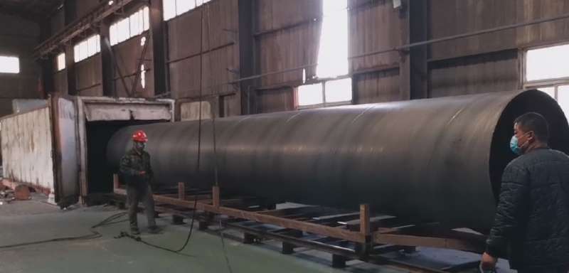 4. 固化冷卻。對涂塑已經固化的涂塑鋼管進行冷卻,放入庫存貨場等待檢驗。