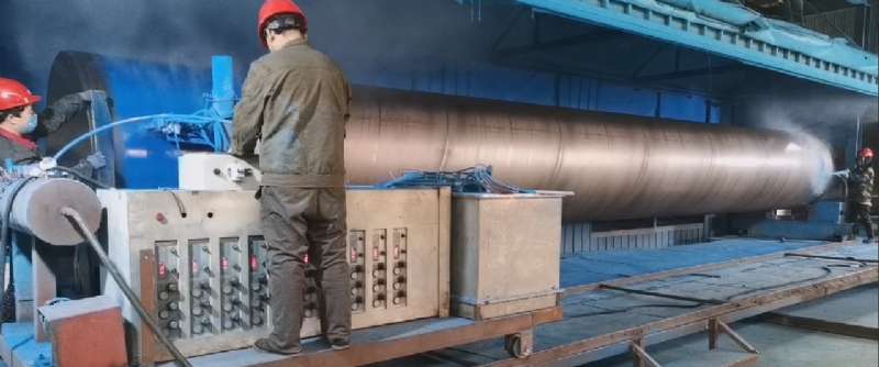2. 管道預熱。對已經拋丸除銹處理合格的管道進行加熱,加熱至工藝要求的溫度范圍(200°-220°),而且必須加熱均勻,內外加熱一次成型,避免二次加熱破壞涂覆的涂層。溫度過高或者溫度過低,都會造成涂層附著力不足,影響涂塑鋼管的使用壽命。