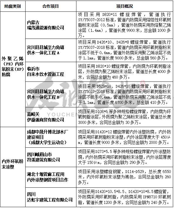 涂層材料:涂覆材料為PE(聚乙烯)或EP(環氧樹脂)