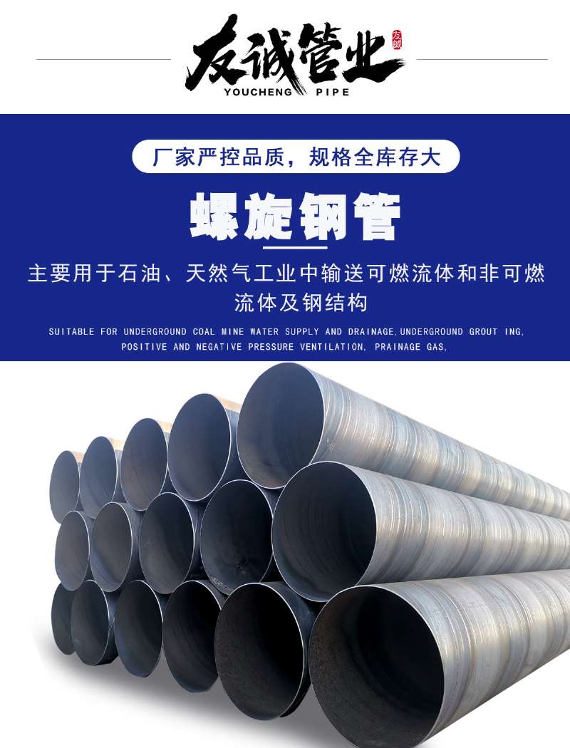 滄州友誠管業(yè)法蘭焊接鋼管專業(yè)生產(chǎn)廠家,法蘭焊接國標(biāo)螺旋鋼管埋弧焊是以連續(xù)送時(shí)的焊絲作為電極和填充金屬。焊接時(shí),在焊接區(qū)的上面覆蓋一層顆粒狀焊劑,電弧在焊劑層下燃燒,將焊絲端部和局部母材熔化,形成焊縫。在電弧熱的作用下,上部分焊劑熔化熔渣并與液態(tài)金屬發(fā)生冶金反應(yīng)。熔渣浮在金屬熔池的表面,一方面可以保護(hù)焊縫金屬,防止空氣的污染,并與熔化金屬產(chǎn)生物理化學(xué)反應(yīng),改善焊縫金屬的萬分及性能;另一方面還可以使焊縫金屬緩慢泠卻。埋弧焊可以采用較大的焊接電流。與手弧焊相比,其*da的優(yōu)點(diǎn)是焊縫質(zhì)量好,焊接速度高。因此,它特別適于焊接大型工件的直縫的環(huán)縫。而且多數(shù)采用機(jī)械化焊接。埋弧焊已廣泛用于碳鋼、低合金結(jié)構(gòu)鋼和不銹鋼的焊接。由于熔渣可降低接頭冷卻速度,故某些高強(qiáng)度結(jié)構(gòu)鋼、高碳鋼等也可采用埋弧焊焊接。埋弧焊鋼管:是以帶鋼卷板為原材料,經(jīng)常溫?cái)D壓成型,以自動(dòng)雙絲雙面埋弧焊工藝焊接而成的螺旋縫鋼管。埋弧焊螺旋鋼管是以連續(xù)焊絲作為電極和填充金屬,工作時(shí)在焊接區(qū)的上面覆蓋一層顆粒狀焊劑,電弧在焊劑層下燃燒,將焊絲端部和局部母材熔化,形成焊縫在電弧熱的作用下,上部分焊劑熔化熔渣并與液態(tài)金屬發(fā)生冶金反應(yīng)。熔渣浮在金屬熔池的表面,一方面可以保 護(hù)焊縫金屬,防止空氣的污染,并與熔化金屬產(chǎn)生物理化學(xué)反應(yīng),改善焊縫金屬的萬分及性能;另一方面還可以 使焊縫金屬緩慢泠卻。