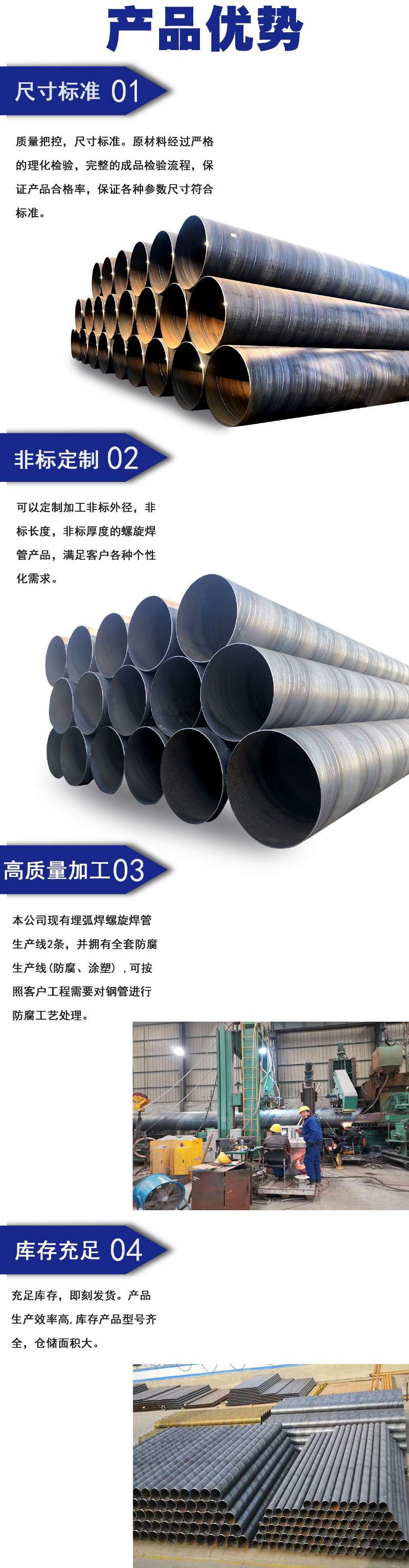 螺旋鋼管是以帶鋼卷板為原材料,經常溫擠壓成型,以自動雙絲雙面埋弧焊工藝焊接而成的螺旋縫鋼管。